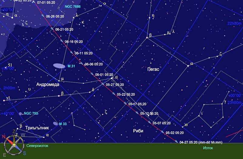 Кометата C/2012 F6 (LEMMON) от края на април до началото на юни
