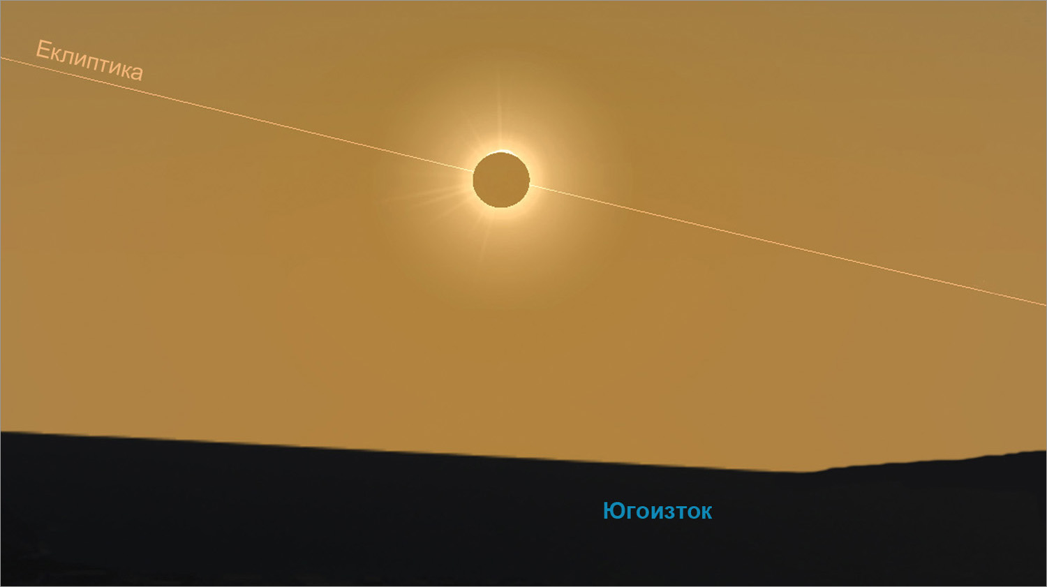 Начало на закриването на самата планета (контакт 1): 06:42:29 ч., на P.A. 76°