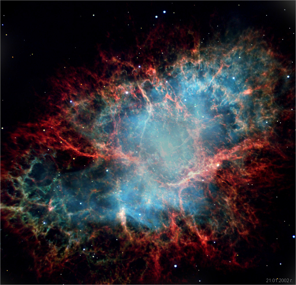 на нишковидните детайли в краищата на мъглявината, разглеждано спрямо звездите.