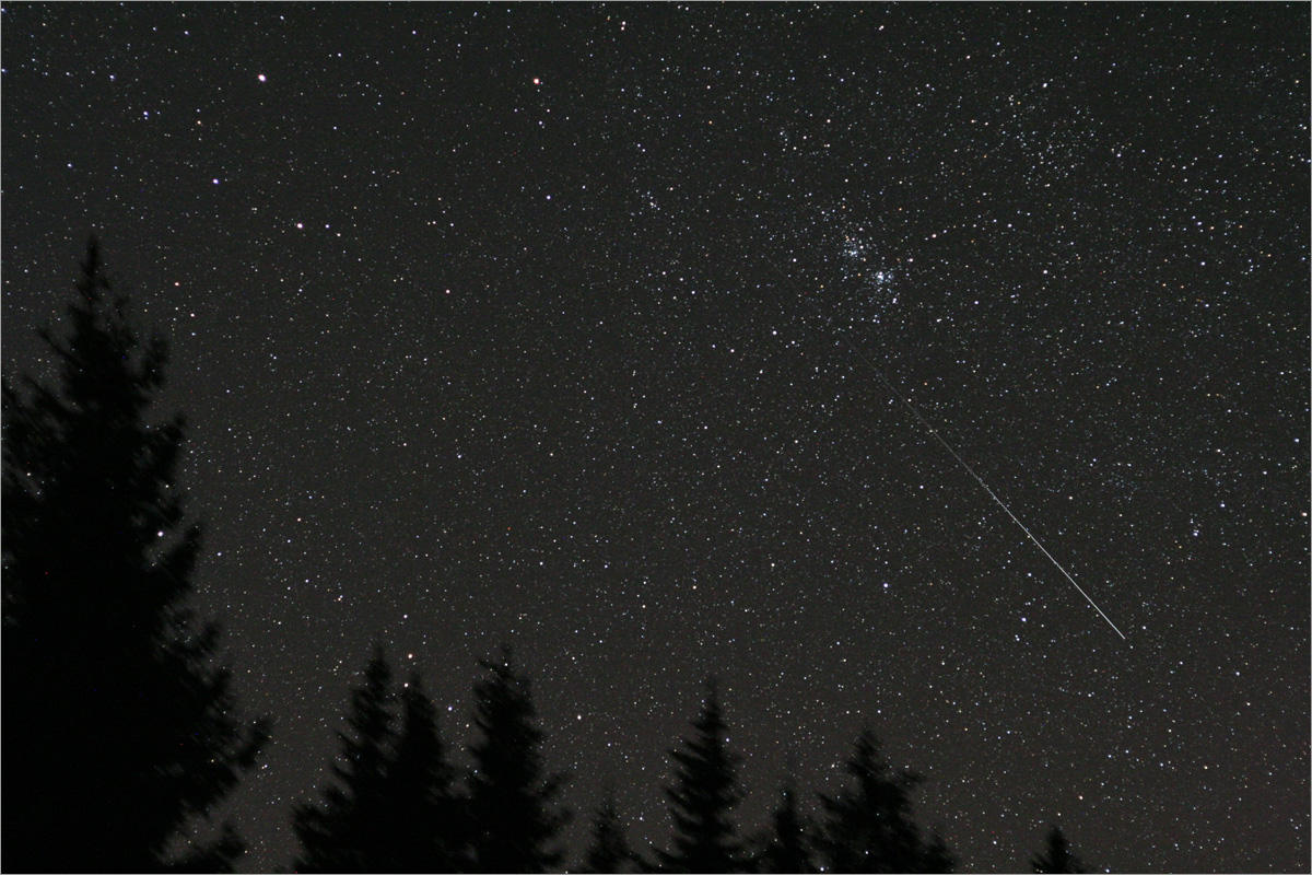 Посочете изображението с мишката за да видите траекторията на метеора увеличена.