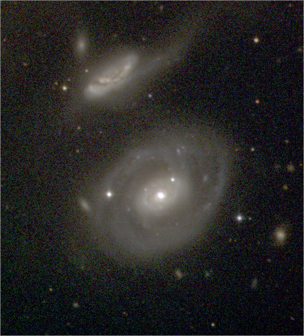 Сийфъртовата галактика NGC 7469 и нейният спътник IC 5283. Гравитационното взаимодействие между галактиките, една от чиито прояви е приливната опашка на IC 5283, може да бъде отключващият механизъм на ядрената активност в NGC 7469. Изображението е получено с 2-м телескоп на НАО Рожен.