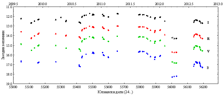 V582 заснета с 2-м RCC-телескоп на НАО по време на максимума на блясъка си на 31 октомври 2011 г.